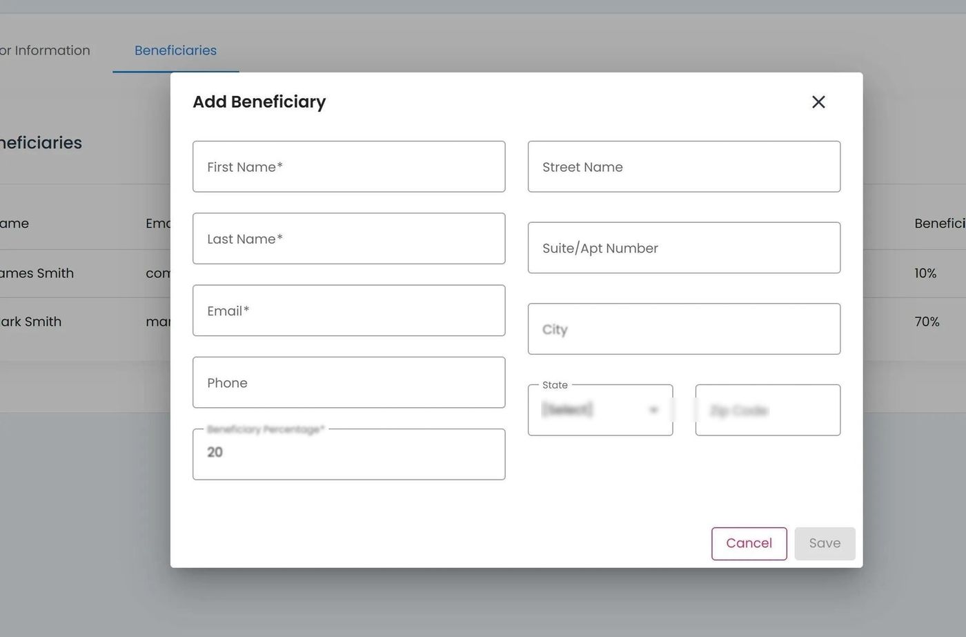 The total allocation percentage across all beneficiaries must add up to 100%.