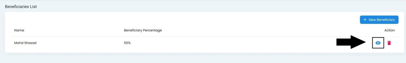 Click the View Beneficiary to view a beneficiary’s details.