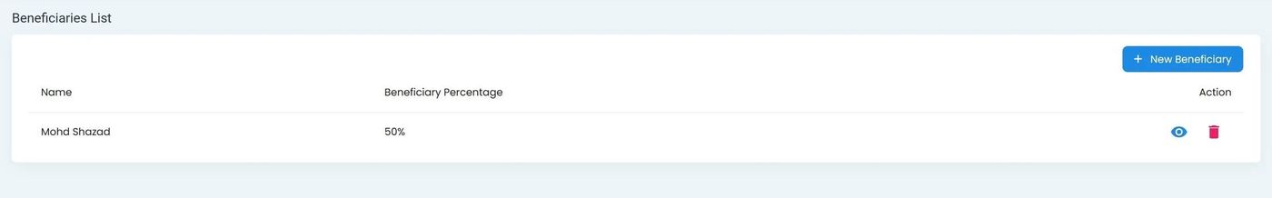 Click the Delete Beneficiary to remove a beneficiary from the list.