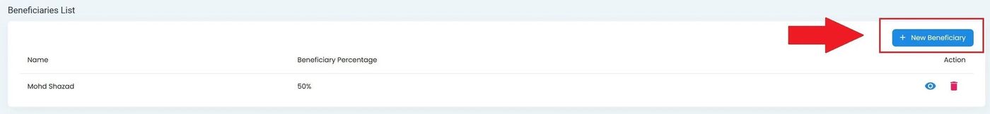 Click the Add New Beneficiary button to add a new beneficiary to the list.