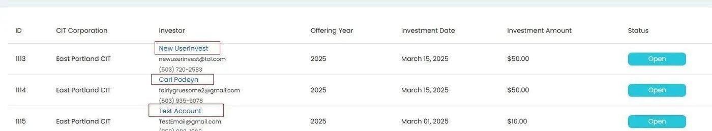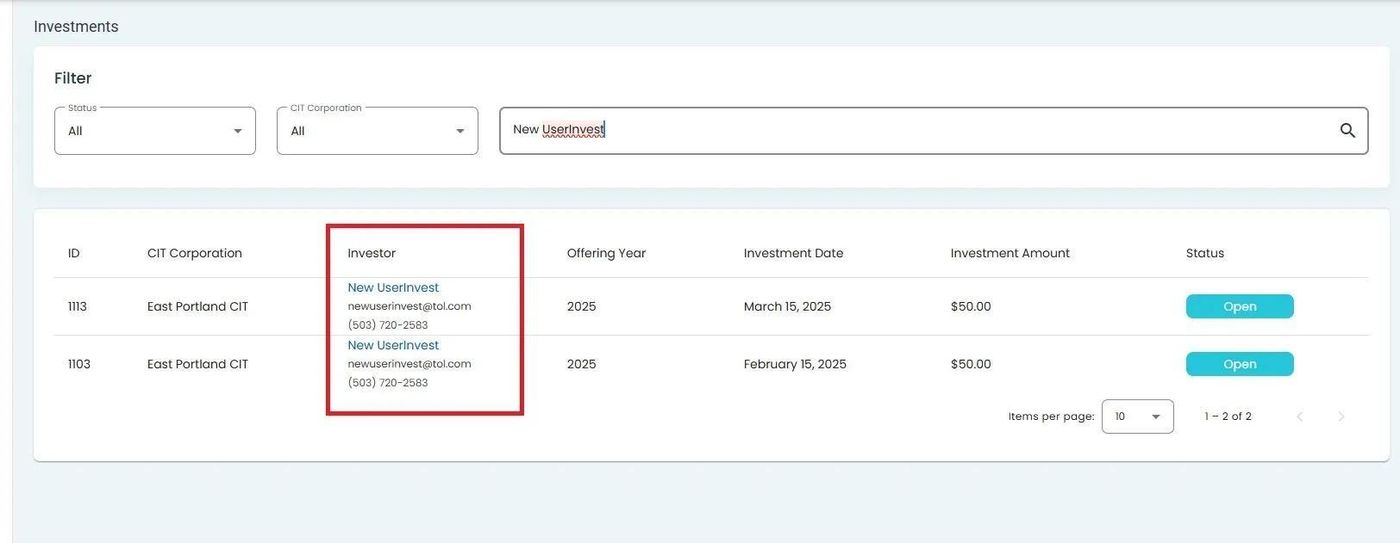 Clicking on an investor’s name will navigate you to their detailed investor profile page.