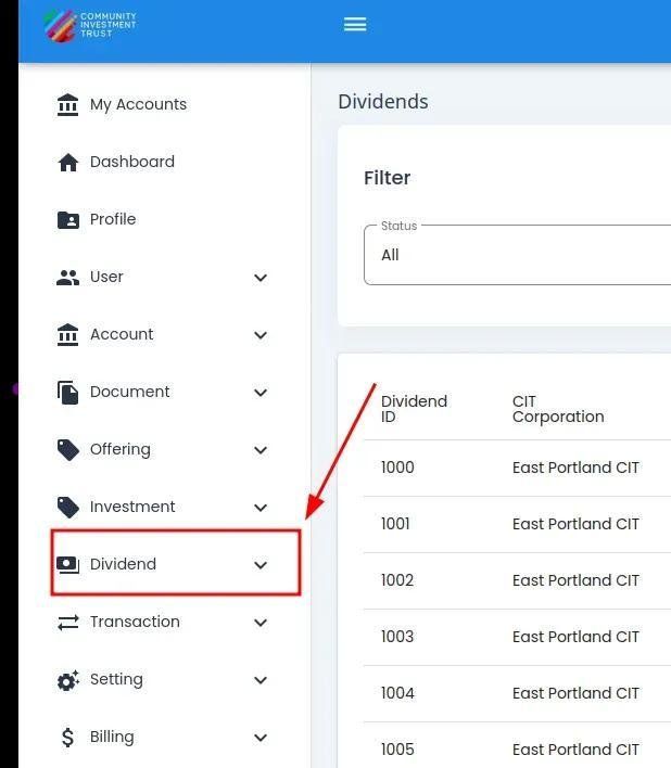 The Section: Investments section provides a comprehensive view of all investments in the system.