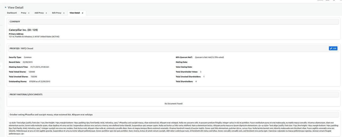 The Section: Proxy section allows CIT Corporation users to manage proxy voting and related documentation.