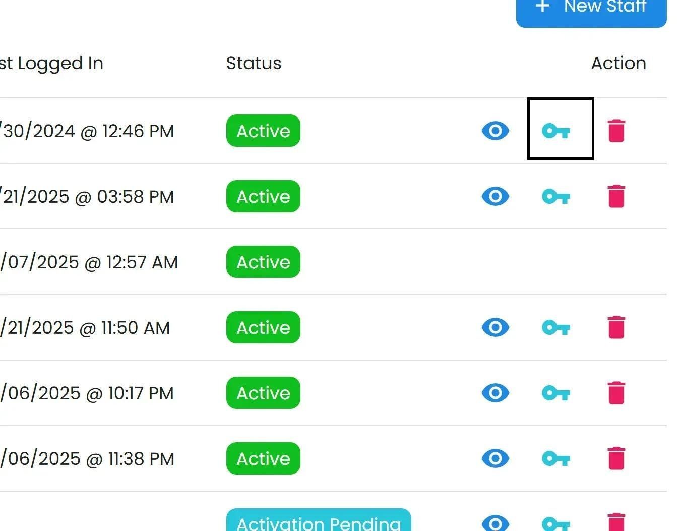 1. Click the edit icon next to the user/staff/company whose permissions you would like to edit.
