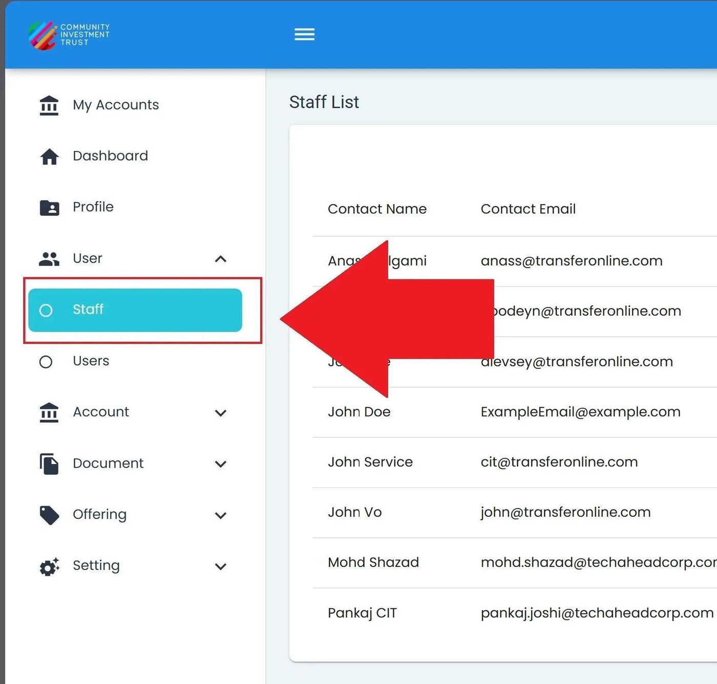 To Find the Staff List Homepage:
