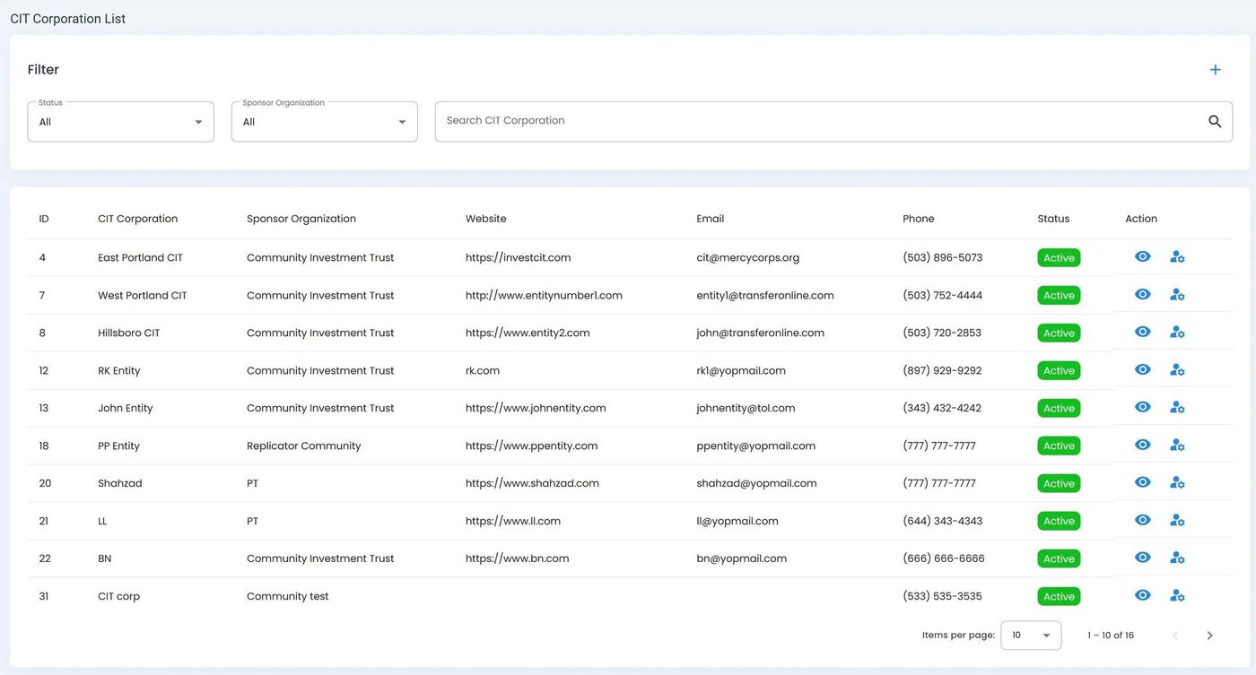 CIT Corporations Section, Homepage, CIT Corporations List Table#