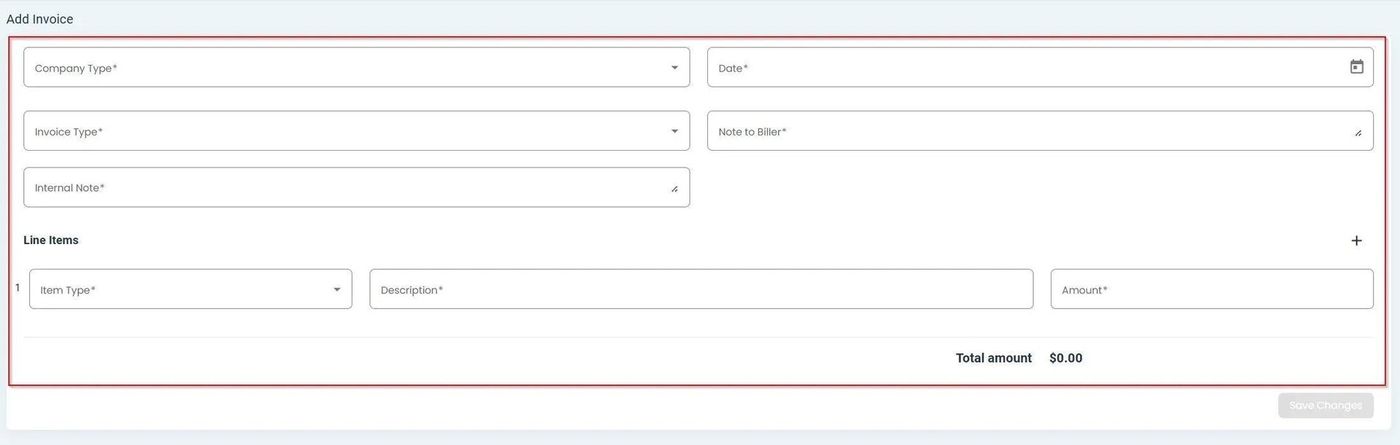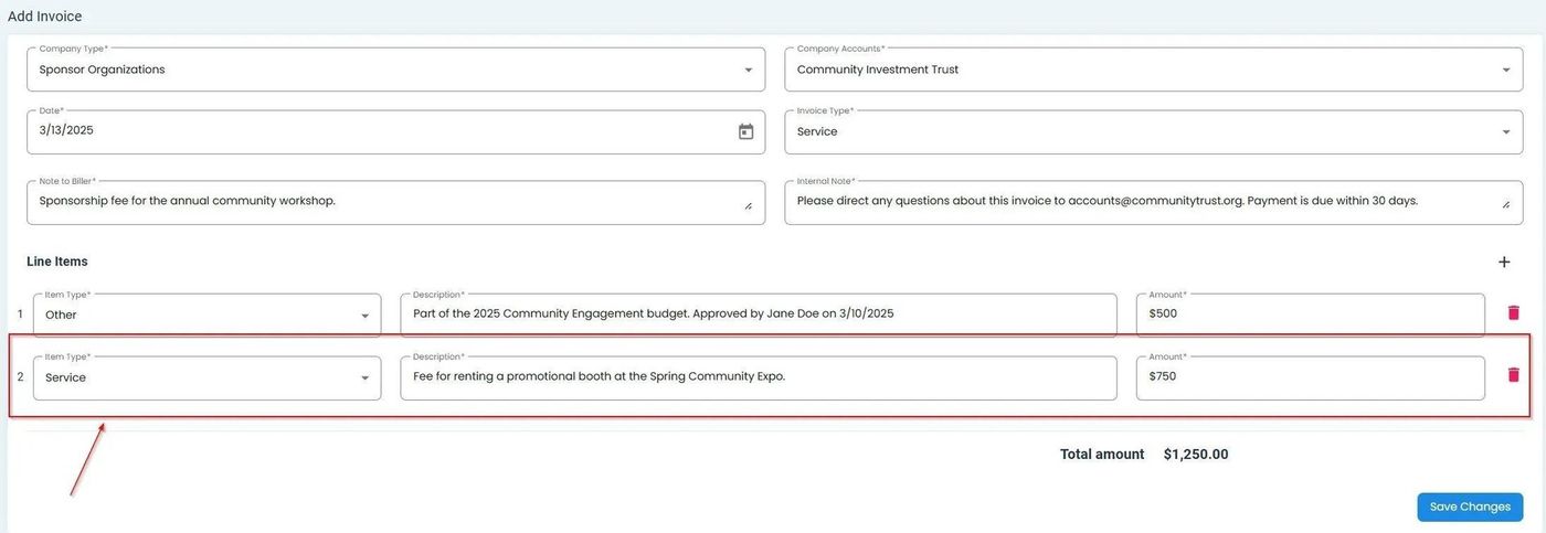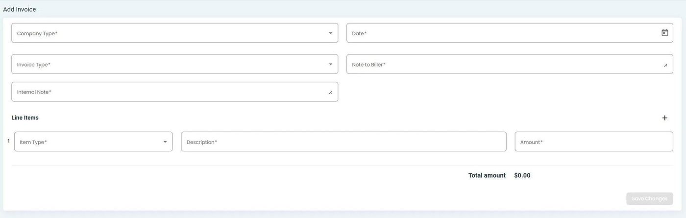 Billing, Invoices, Add Line Item Button#