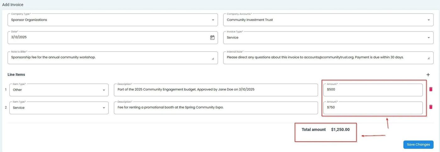 Billing, Invoices, Total Updated with New Line Item#