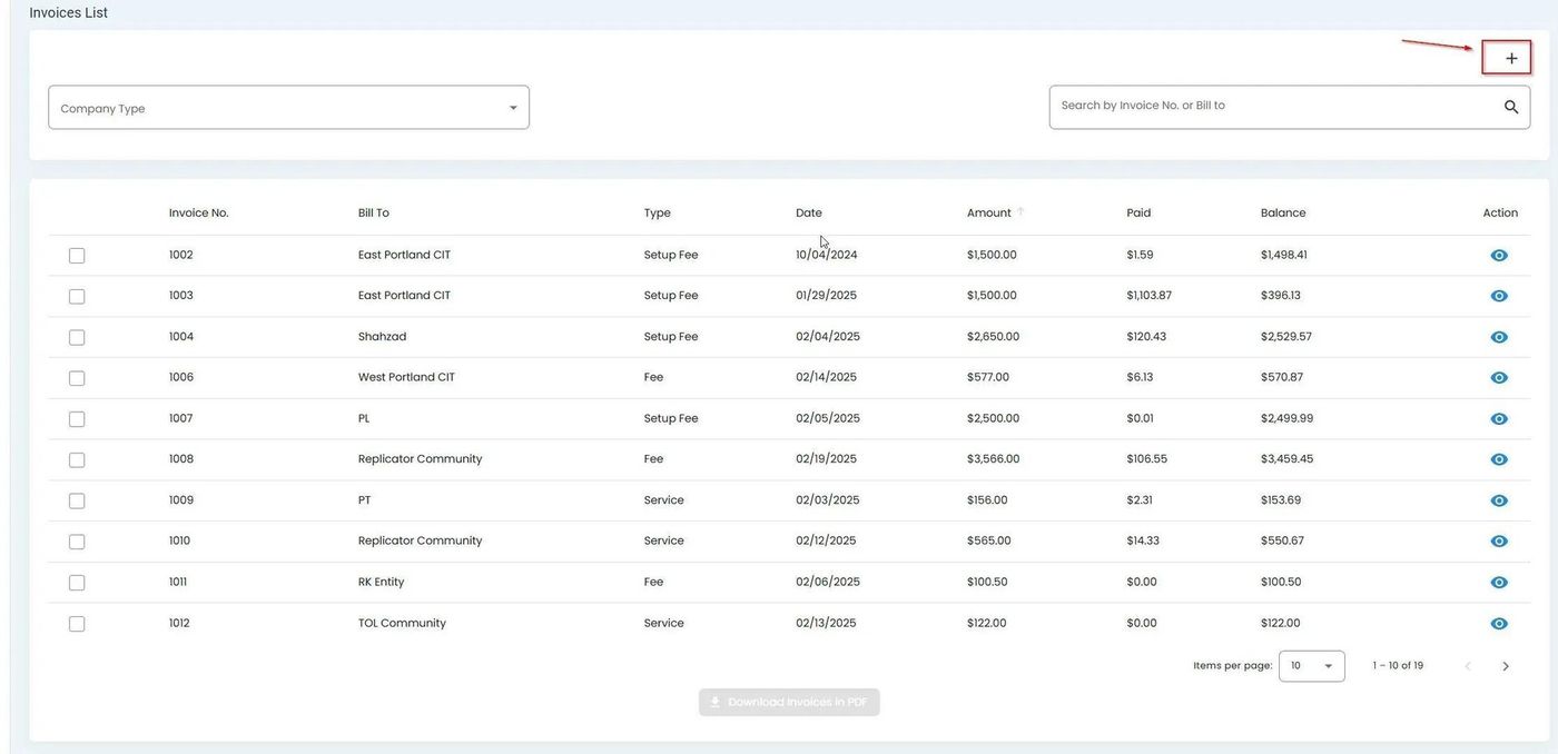 Billing, Invoices, Add New Invoice Button#