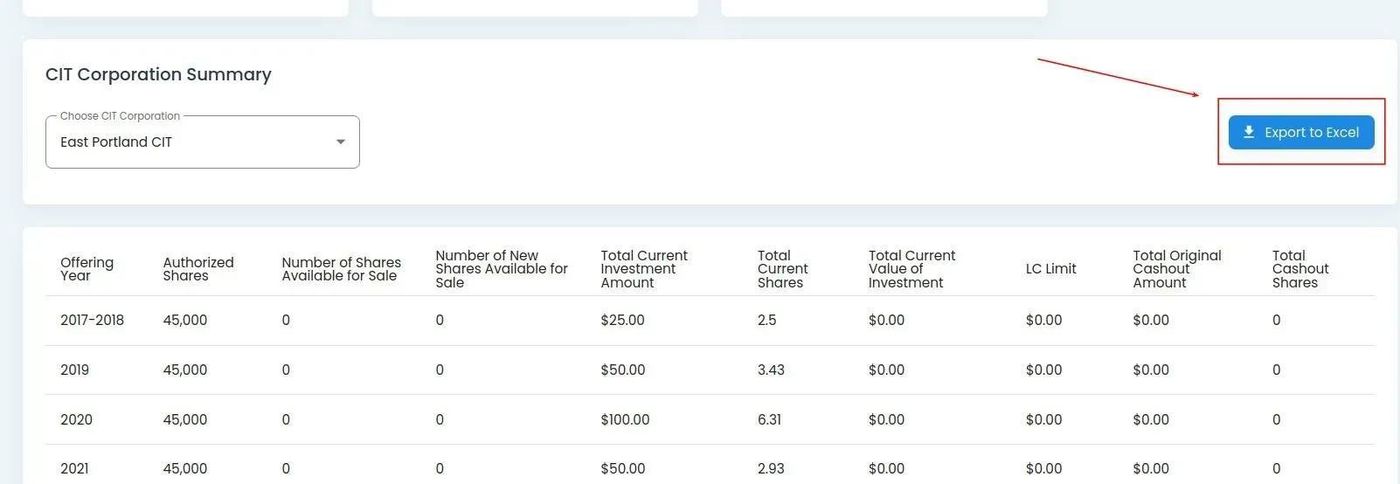 Dashboard, CIT Corporation Summary Table Export Button Location#