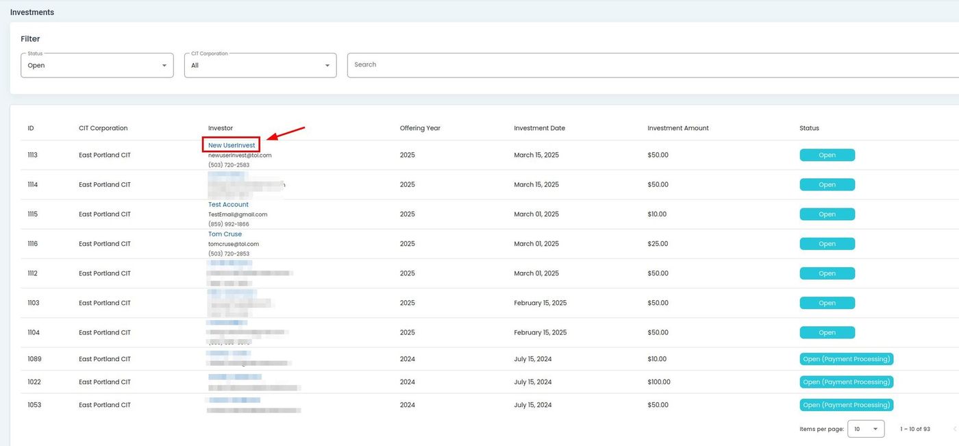 You will be redirected to the Investor Details page once you click an Item: Investor’s Name.