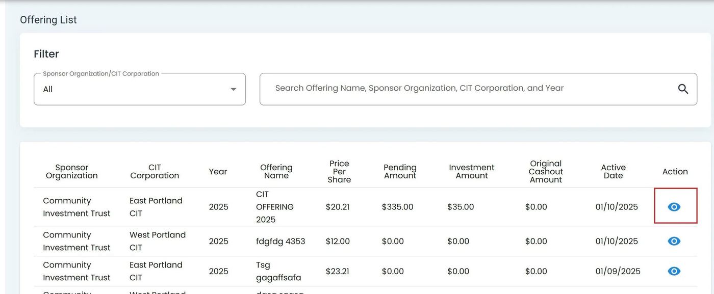 The Offering Document Details page provides comprehensive information about all documents related to the selected CIT Corporation’s offering process.