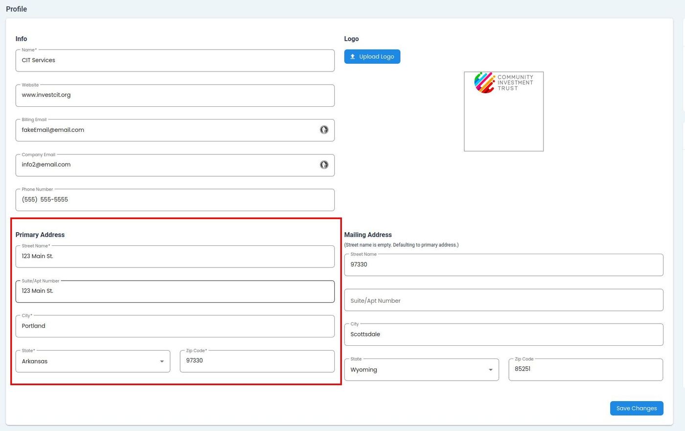 The Section: Primary Address subsection is where you can change the primary location of your company.