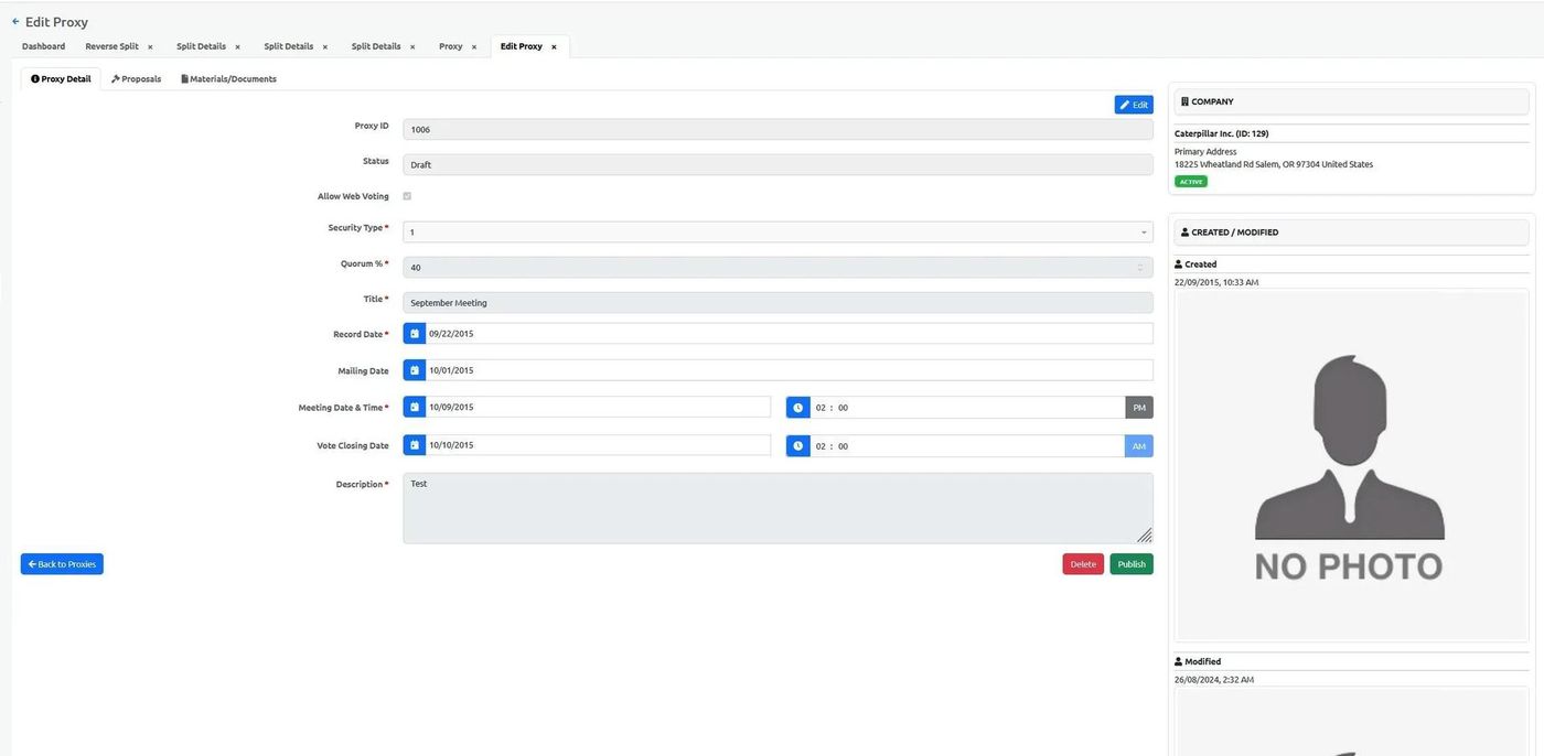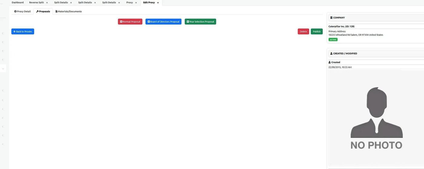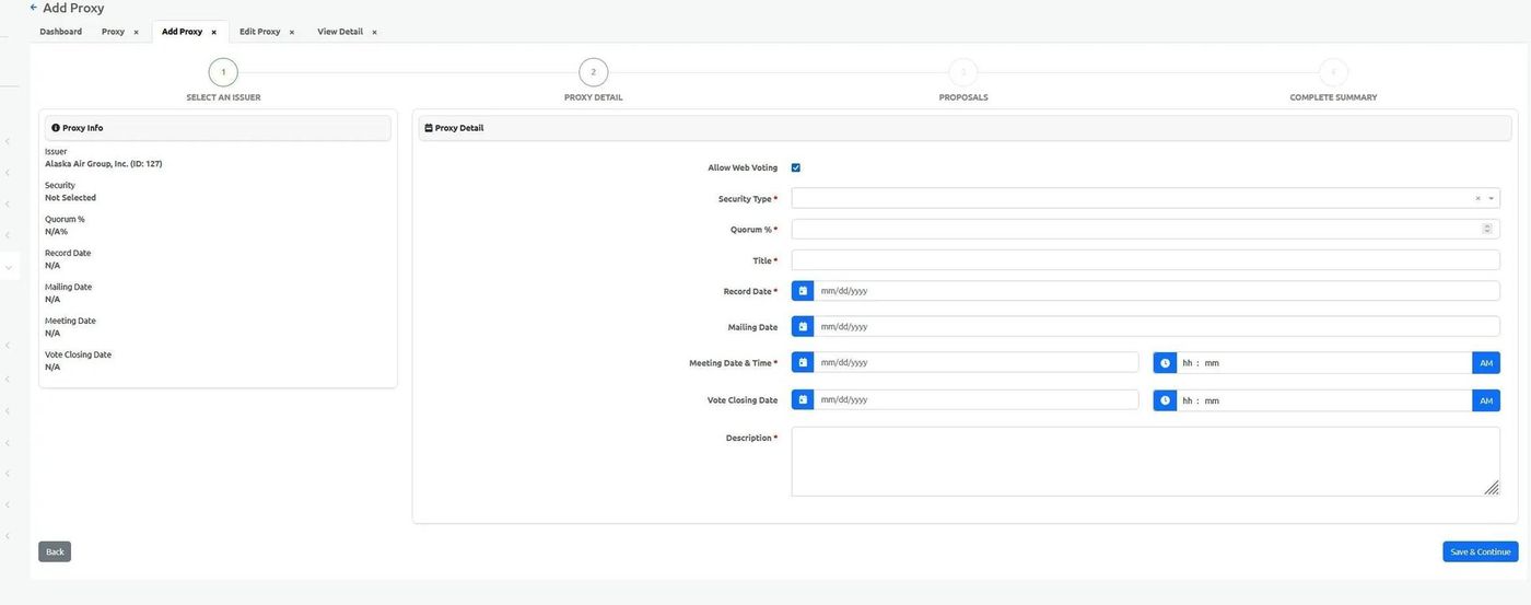 After adding a proxy, you can add proposals and documents to complete the proxy record.