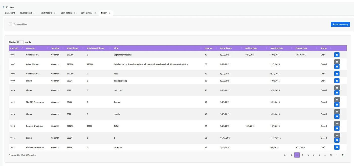 The Section: Proxy section allows community users to manage proxy voting records and related documentation.
