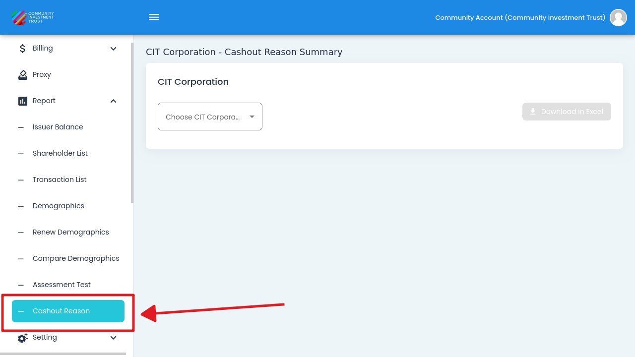 Cashout Reason - The reason provided by the investor
