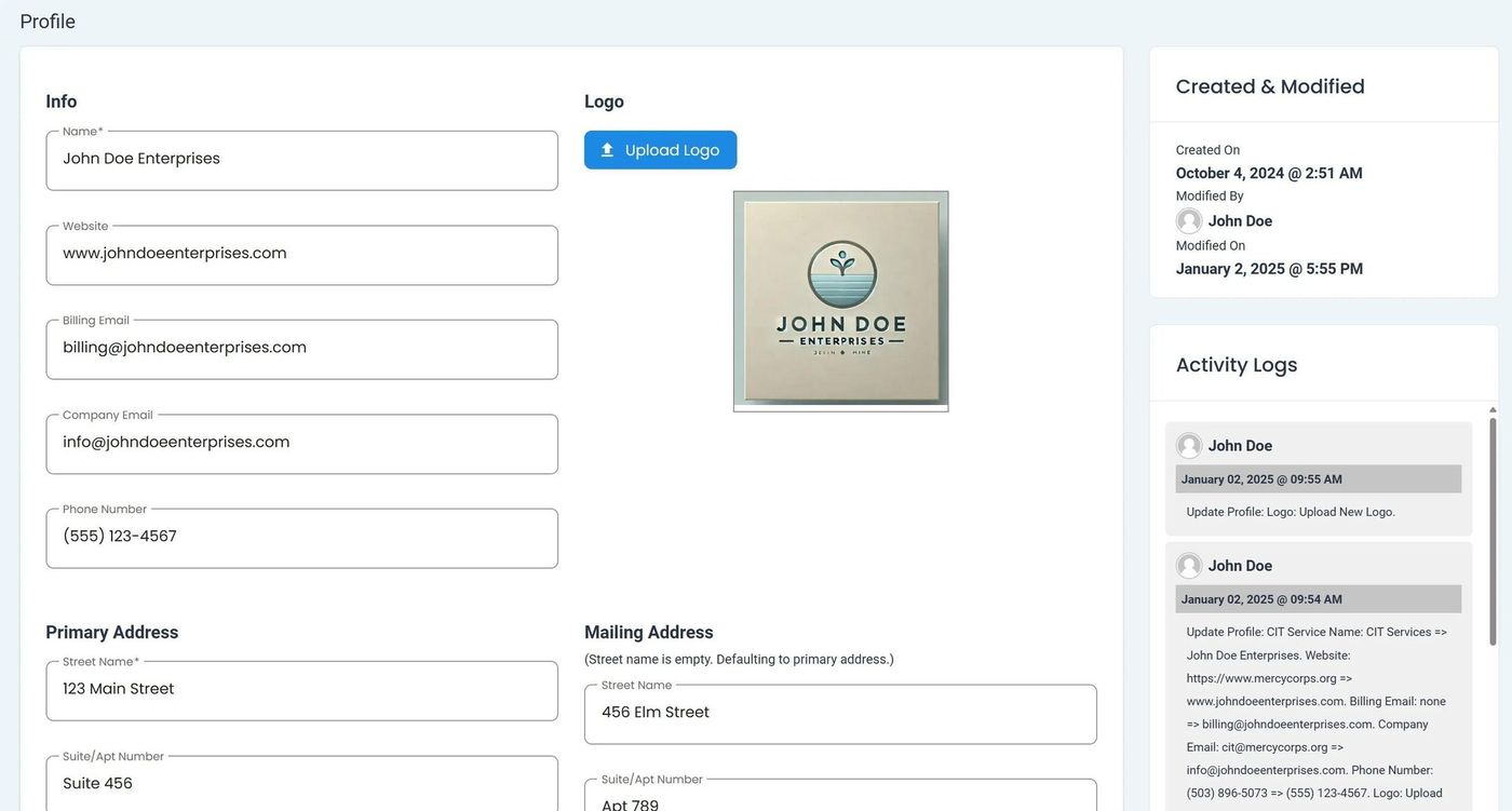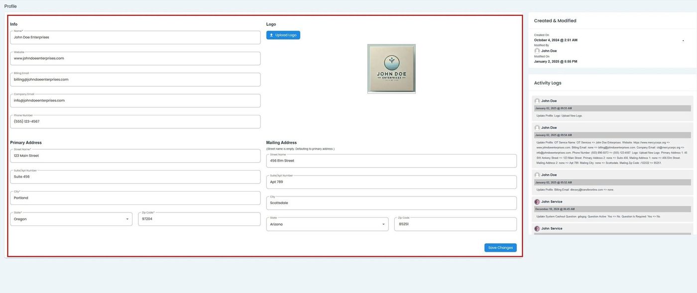 The Section: Community Profile settings allow community users to view and edit their organization’s profile information.