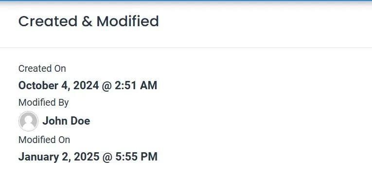 The Created & Modified section contains the following: