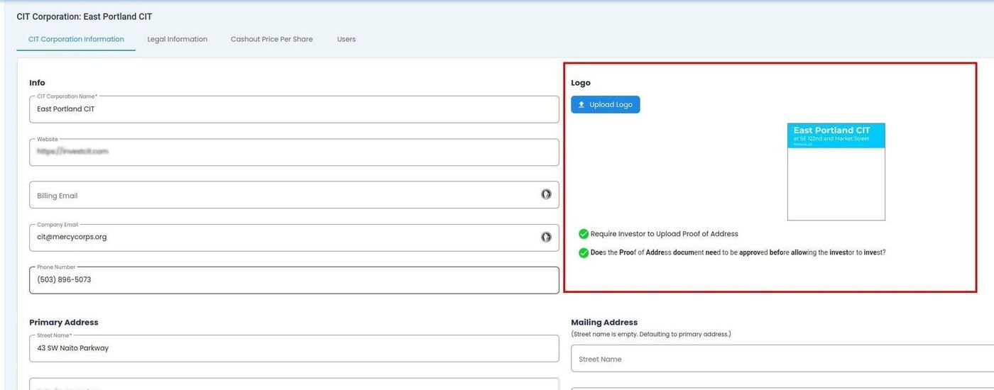 In addition, this tab allows you to modify information related to the Corporation’s: