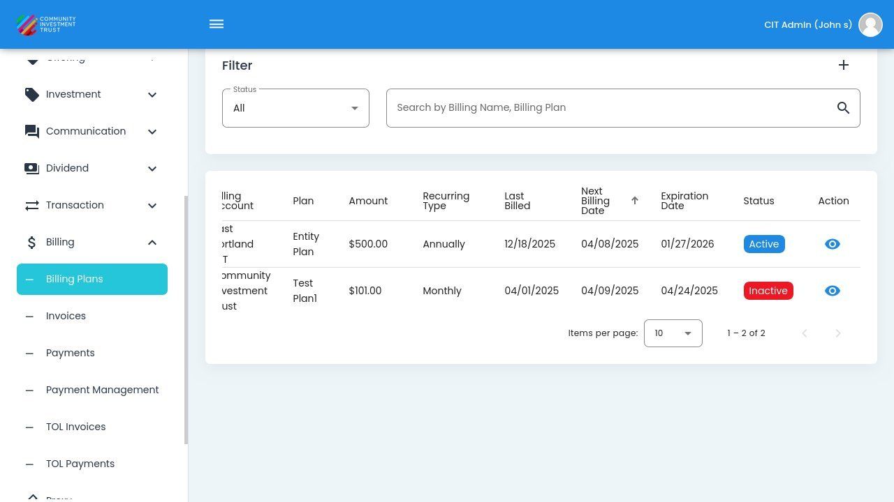 Status: Expiration Date - The date when the billing plan expires.