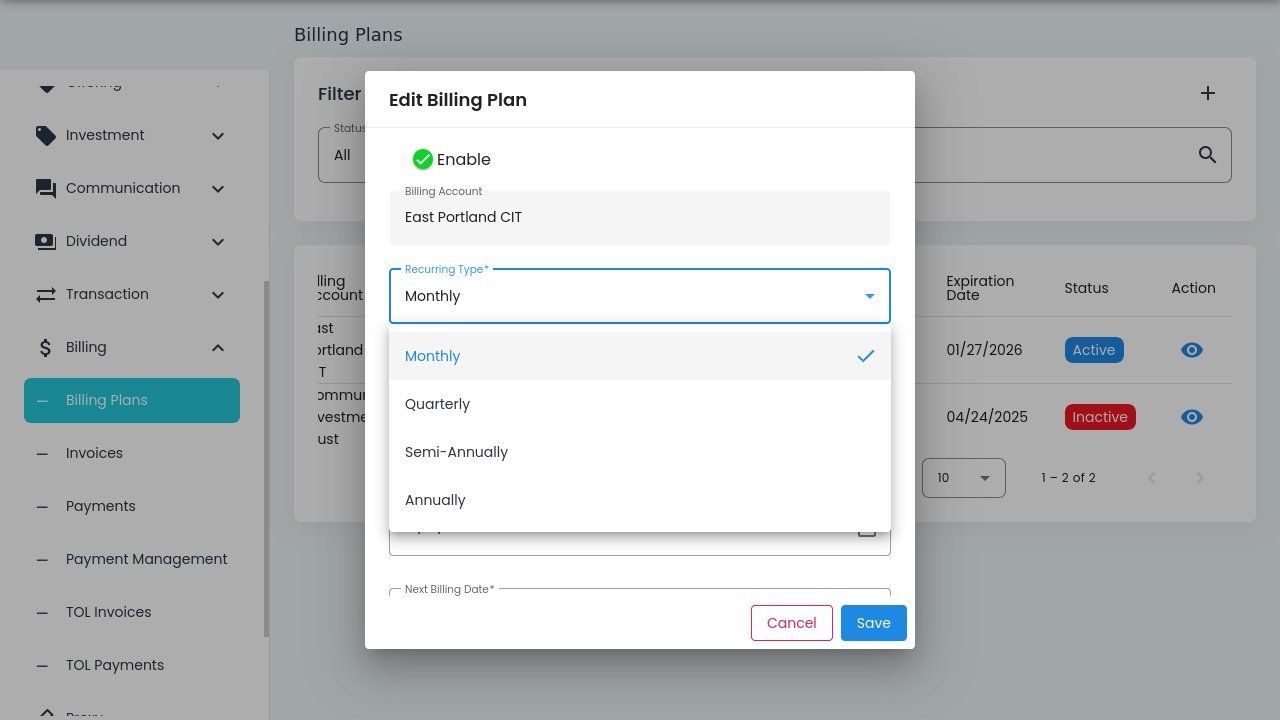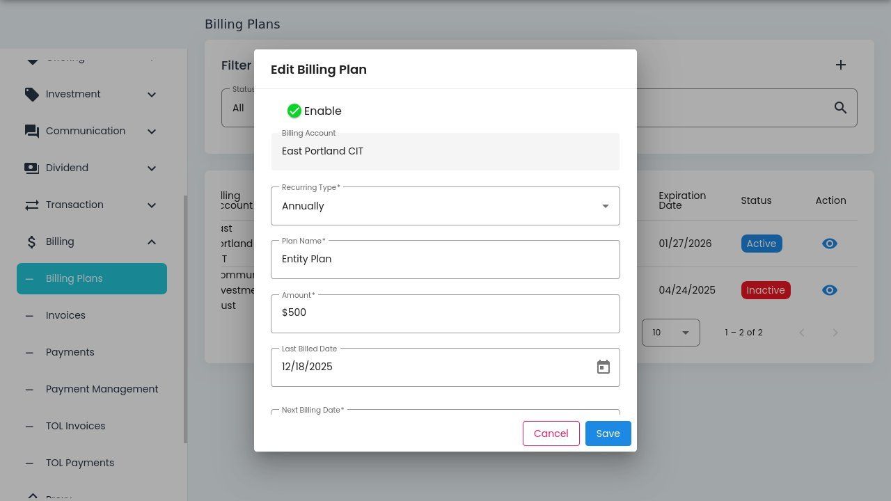 Edit Billing Plan Dialog#