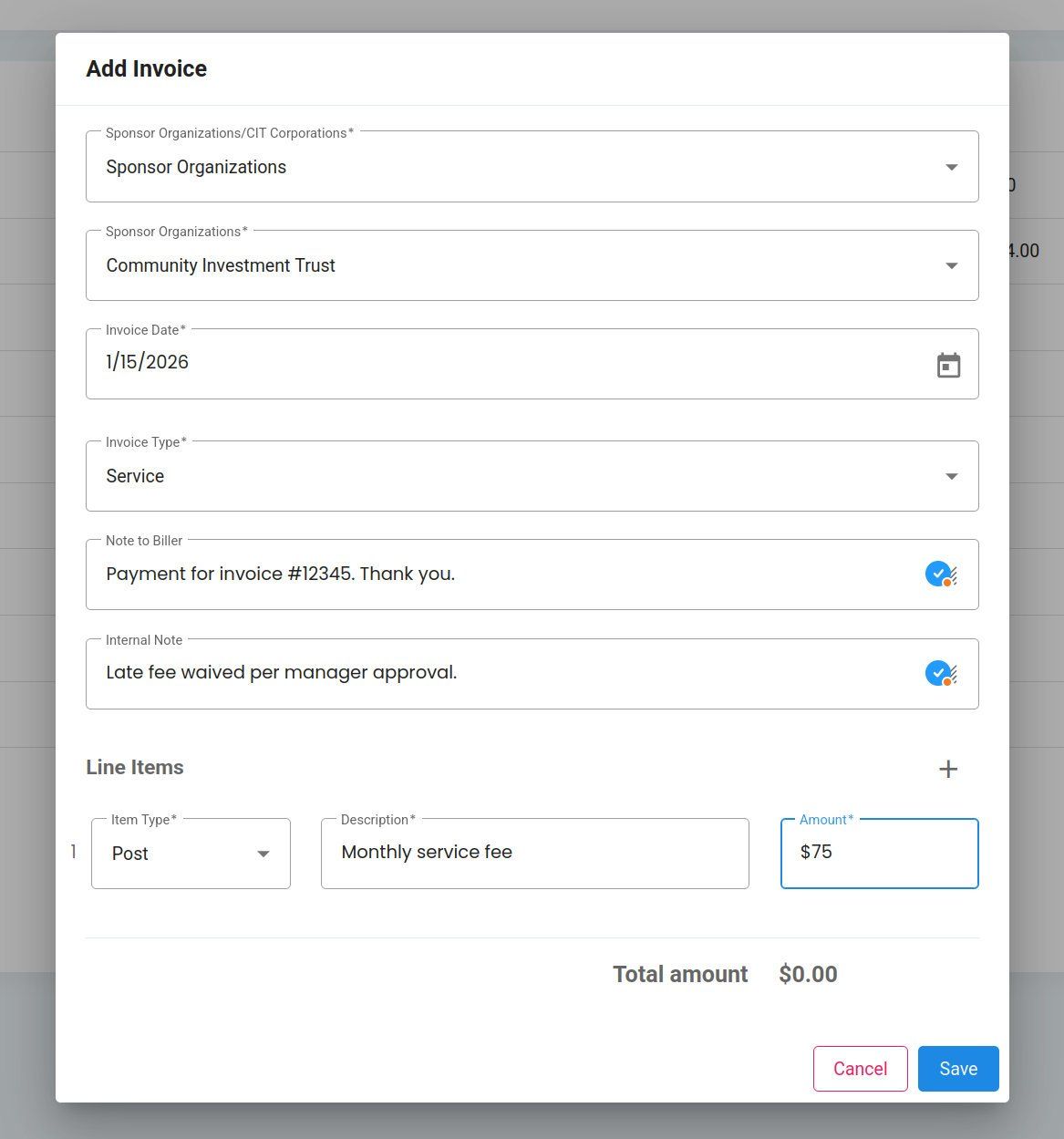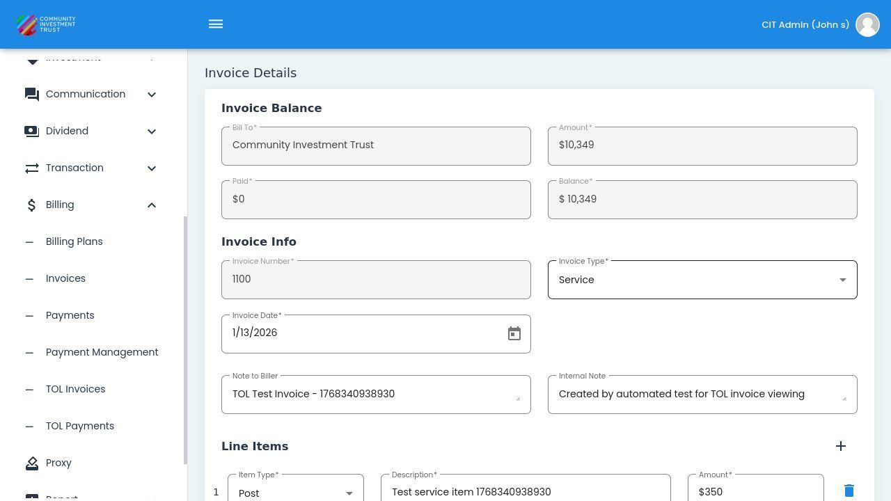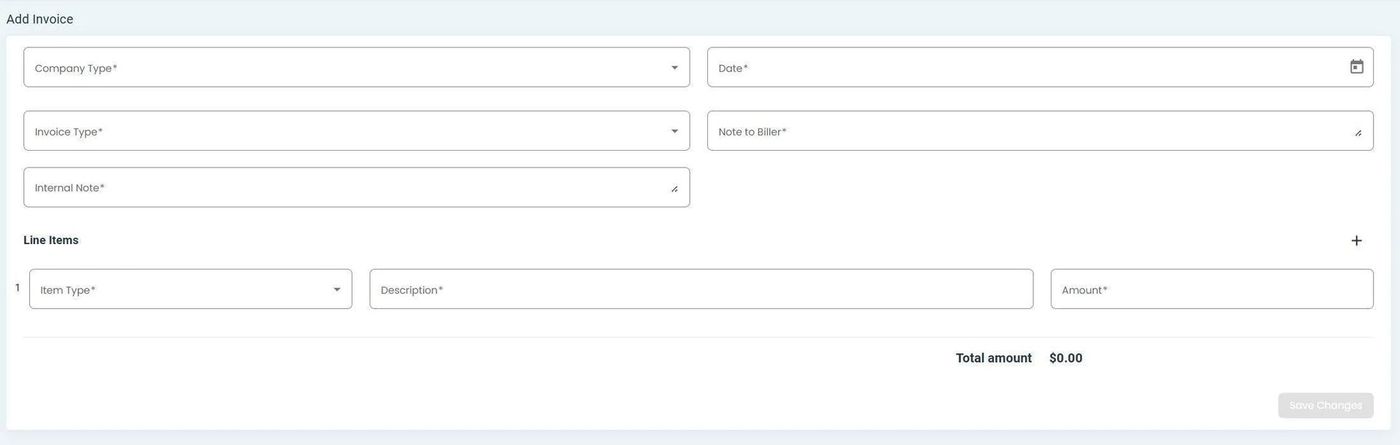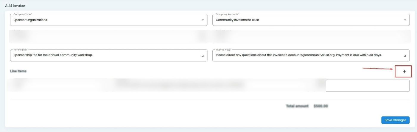 Billing, Invoices, Add Line Item Button#