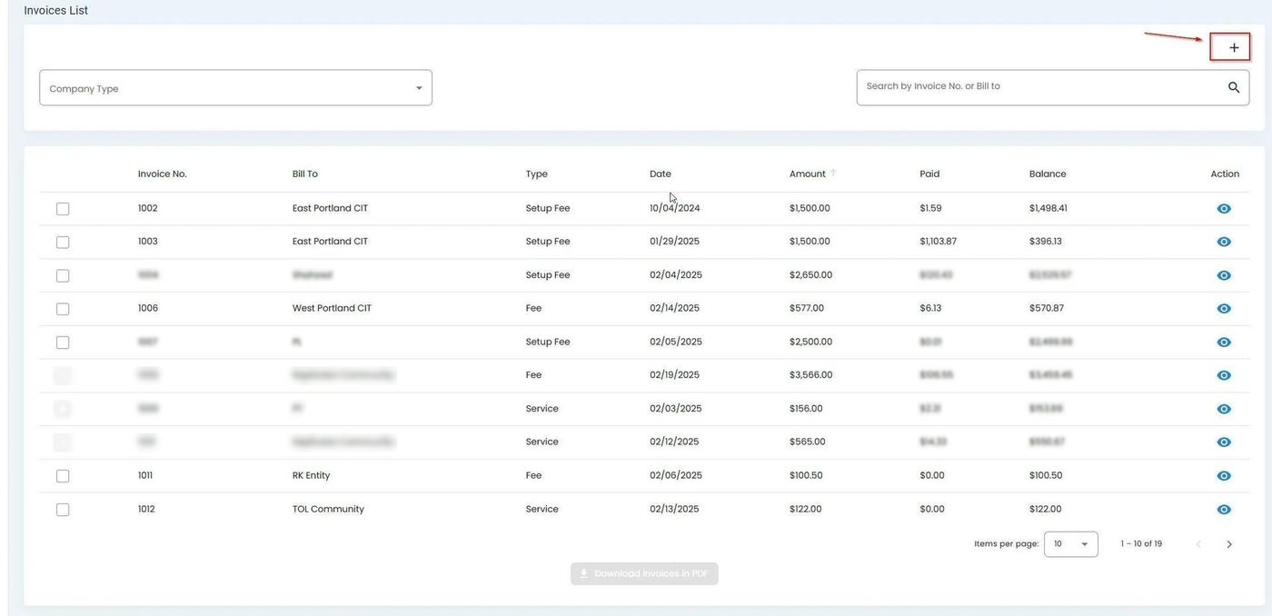 Billing, Invoices, Add New Invoice Button#