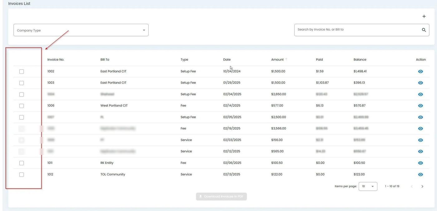 Download Multiple Invoices in PDF#