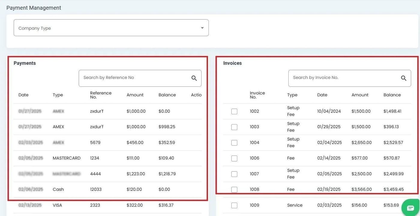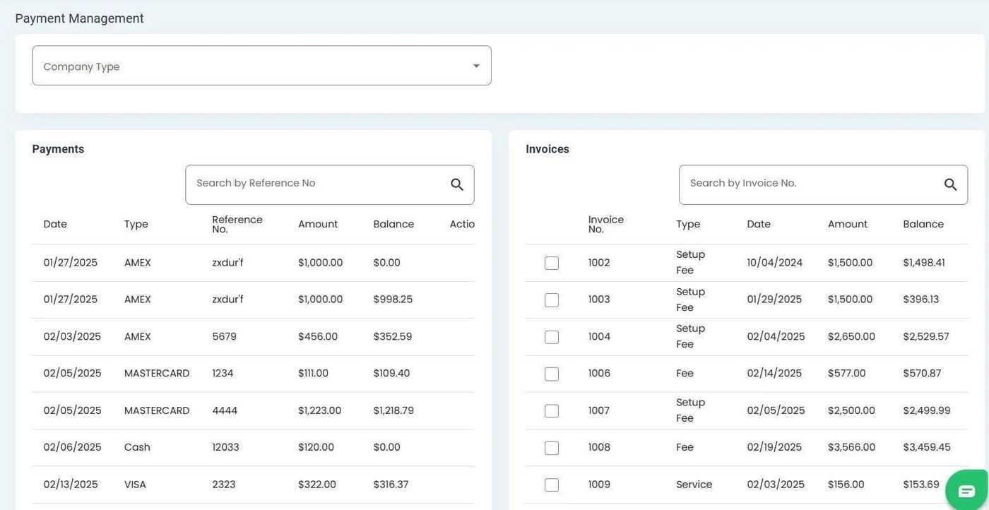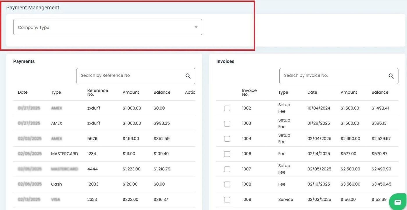 The Section: Payment Management section provides tools for managing payments and invoices within the system.
