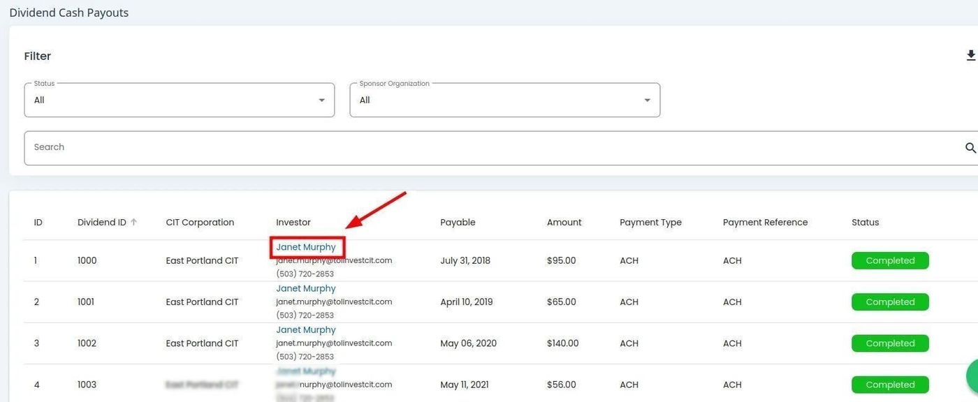 Viewing Investor Details from Cash Payouts#