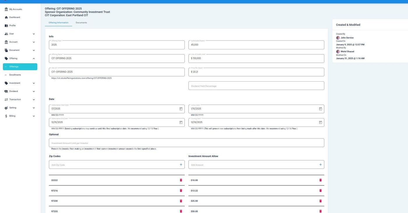 Offering Details, Offering Information Tab#