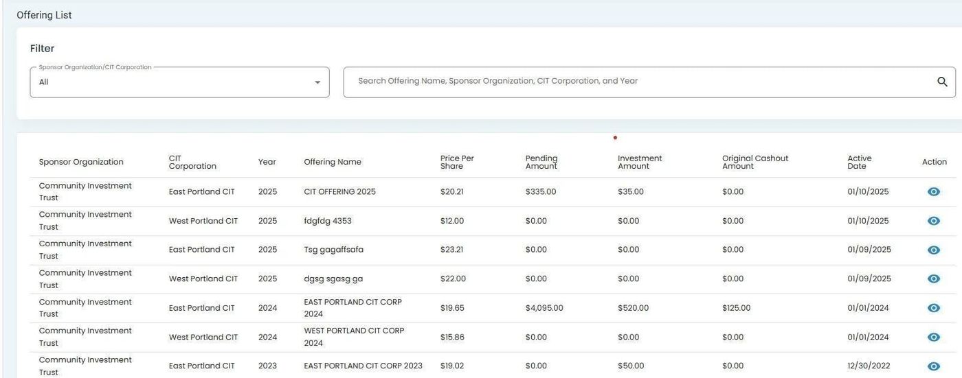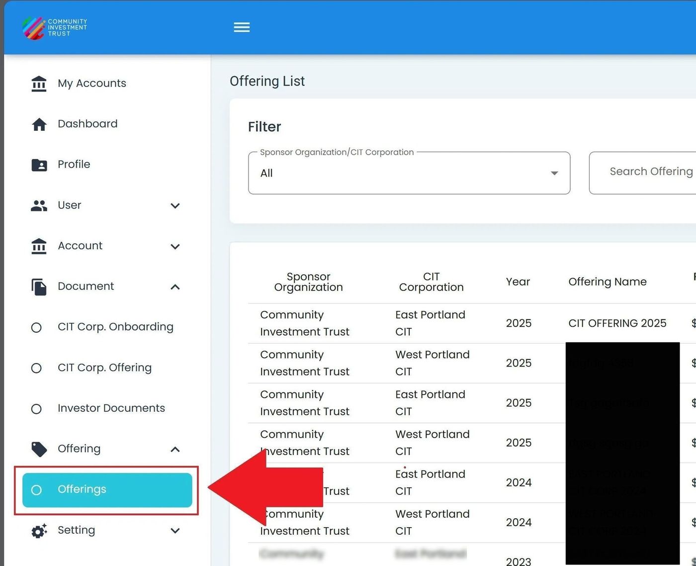 Offerings List Table#