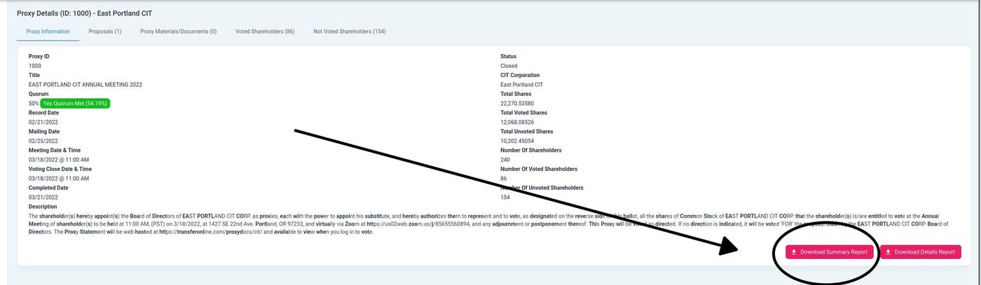 Action: Download Summary Report - Generate a summary PDF of proxy voting results