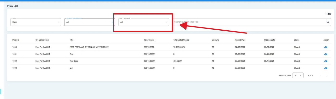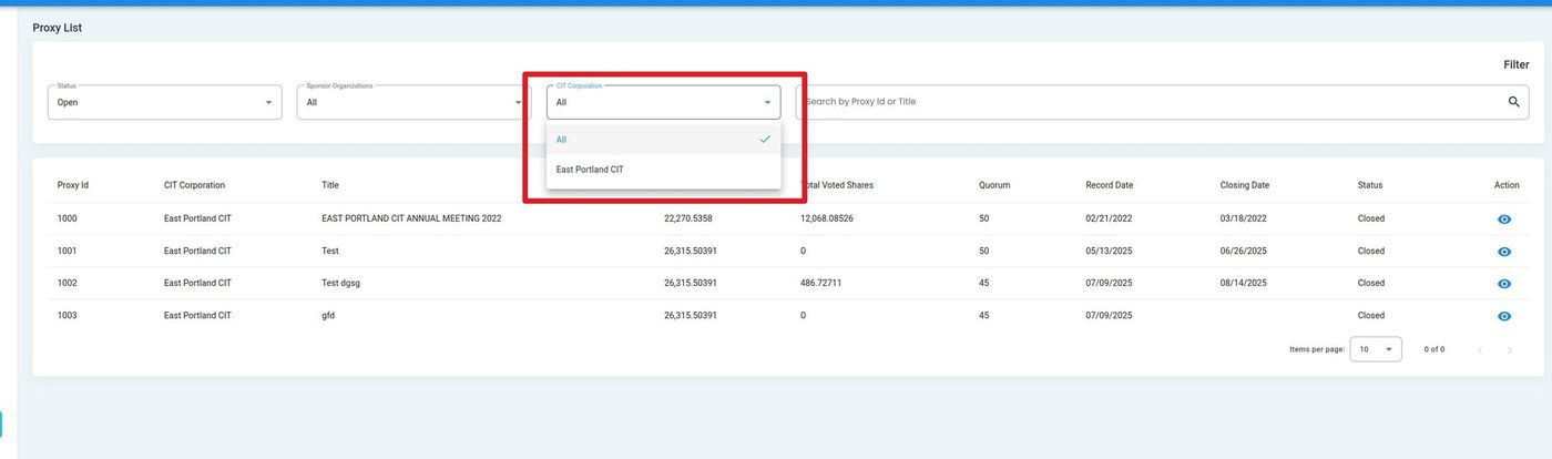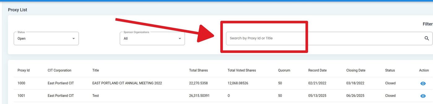 Action: Enter a Proxy ID or Title to search.