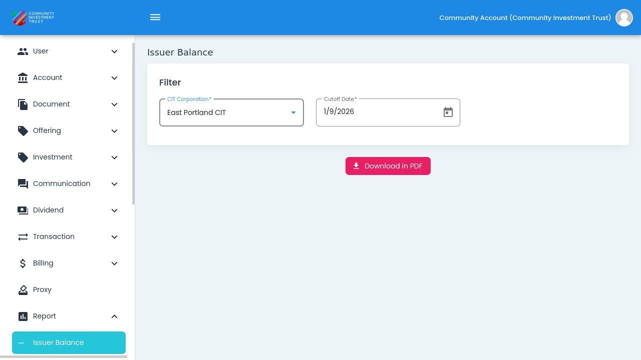 The Issuer Balance Report can be exported to PDF format for sharing and archival purposes.