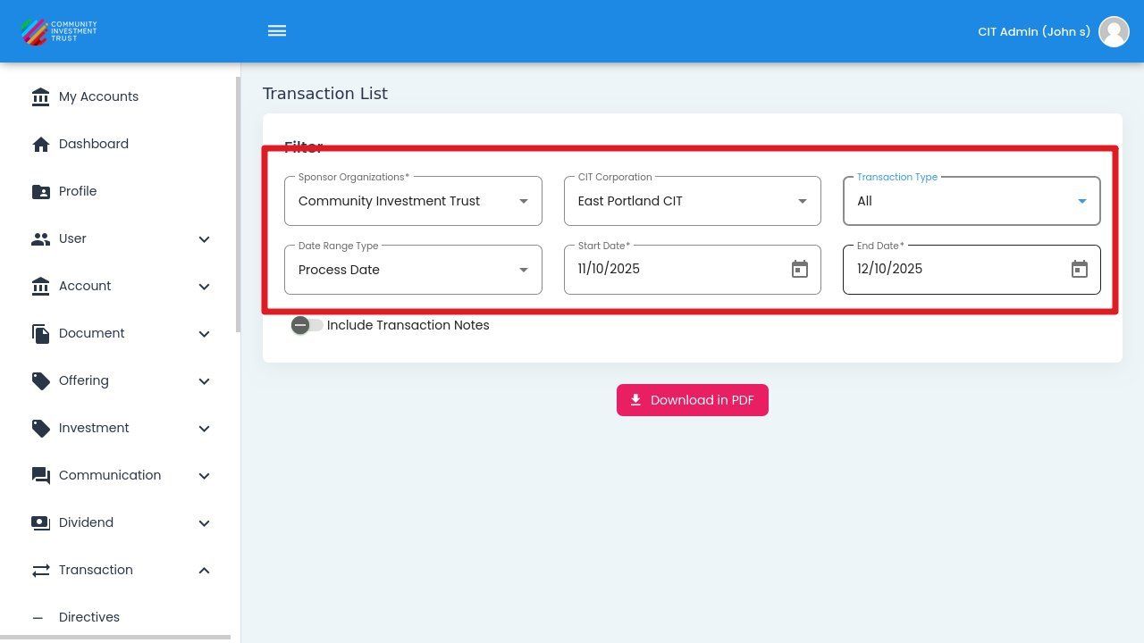 Status: Process Date - Filter by the date transactions were processed in the system.