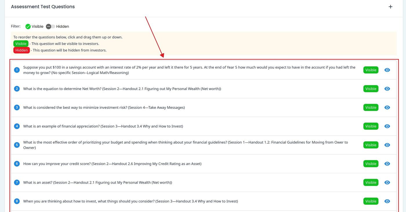 Assessment Question List with Visibility Filters#