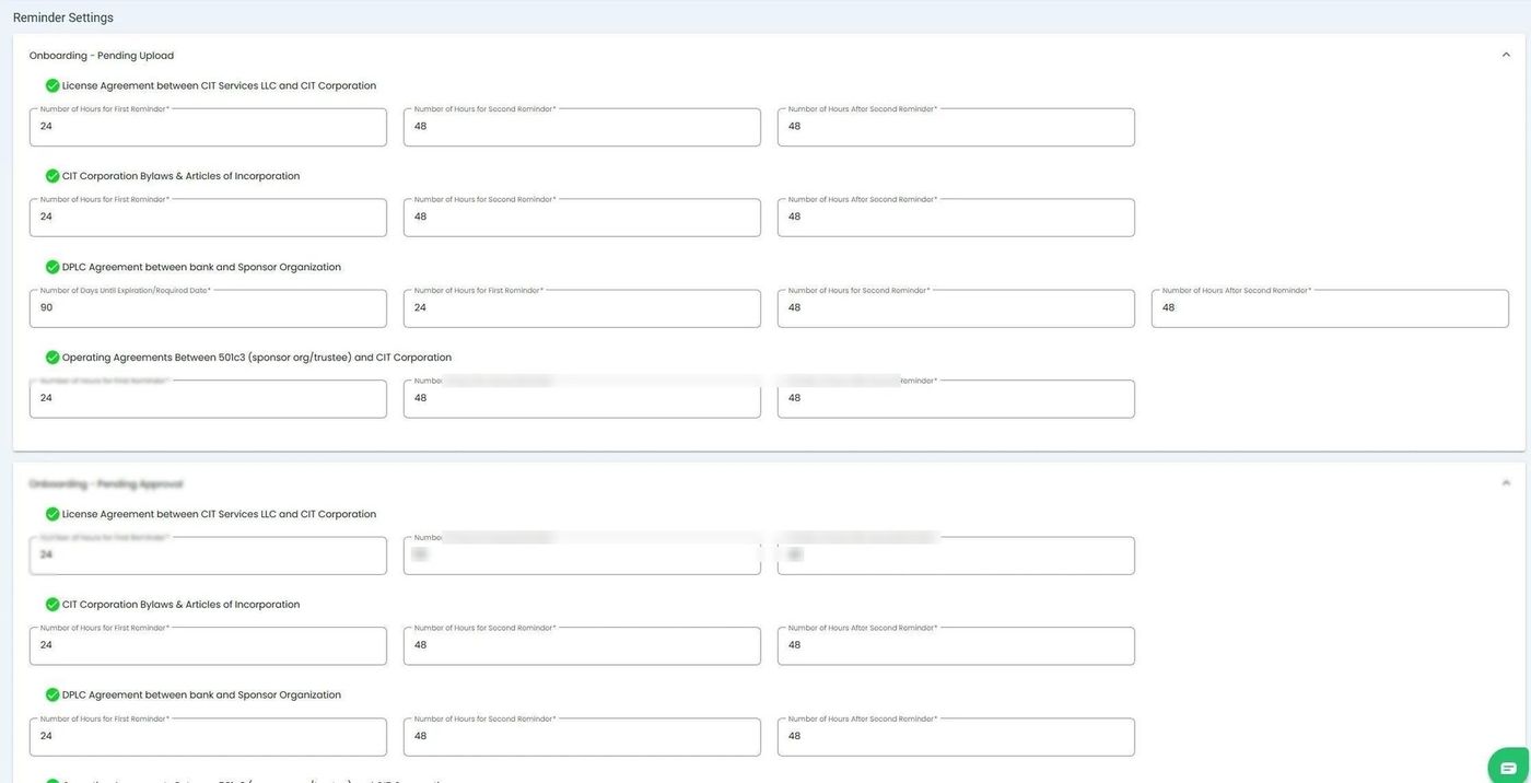 Pending Upload: Configure reminders for documents and information that need to be uploaded
