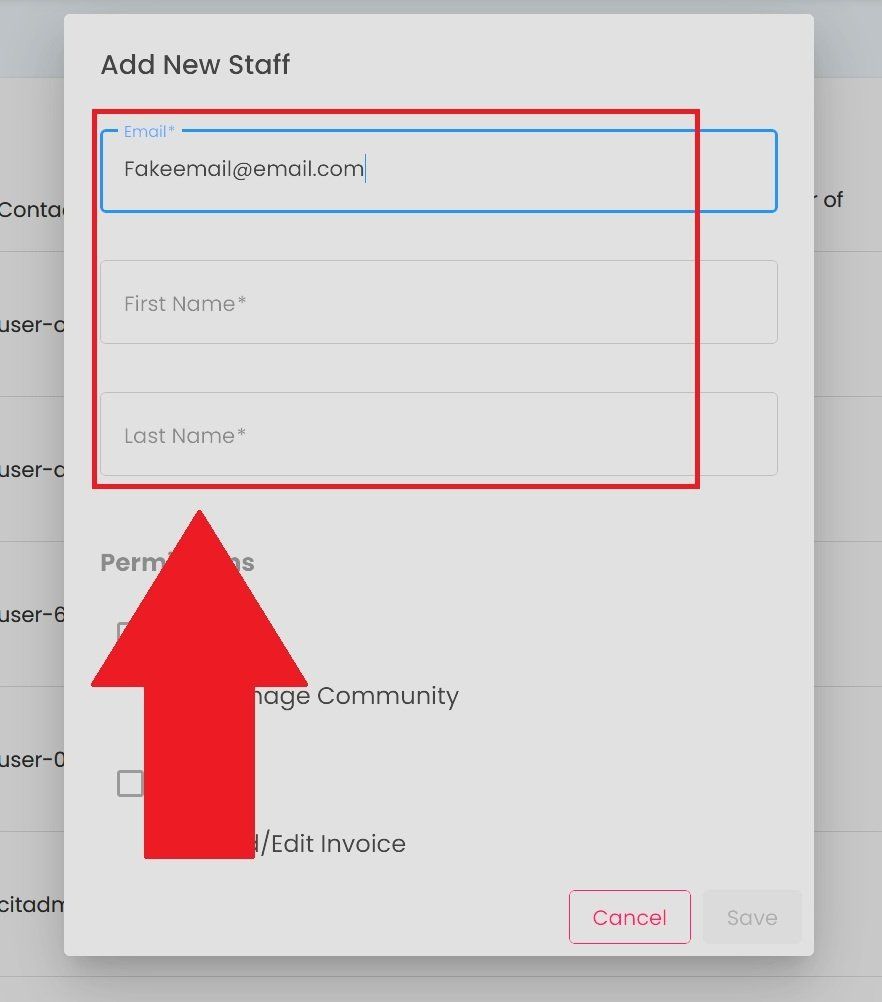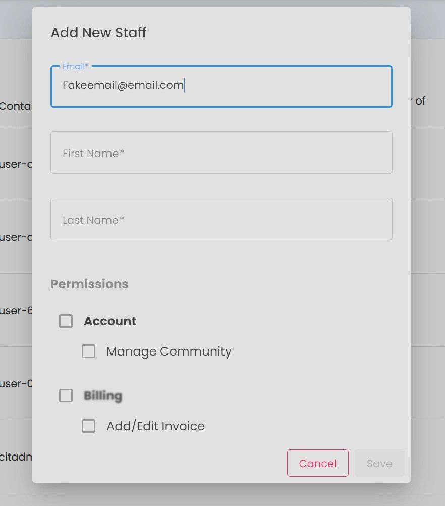 When adding a new staff member, ensure all required fields are completed. Required fields are indicated with an asterisk and must contain valid information before the form can be submitted.