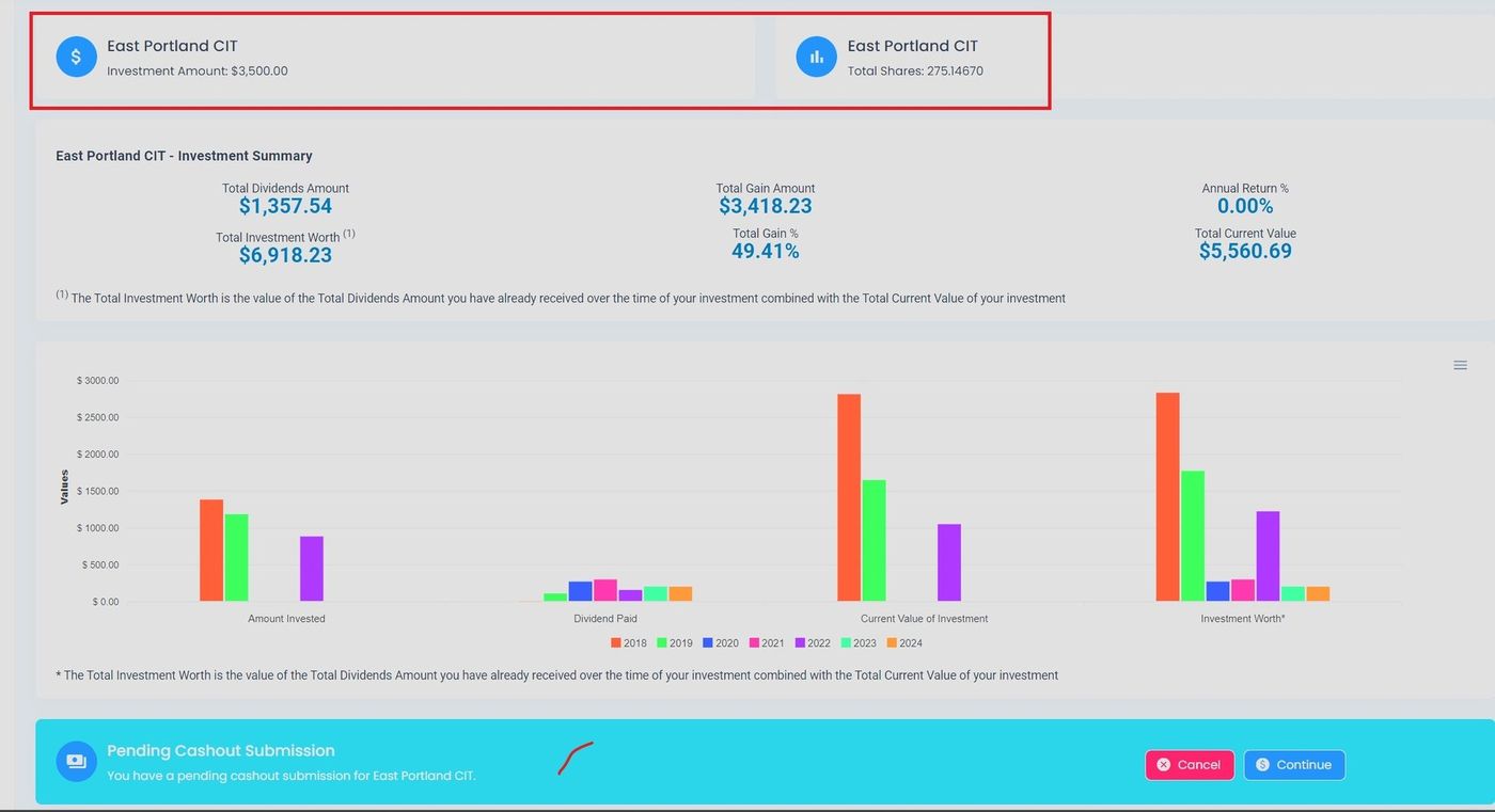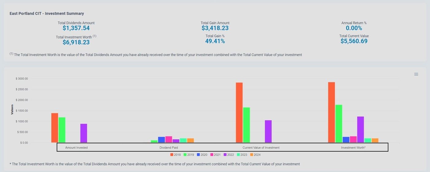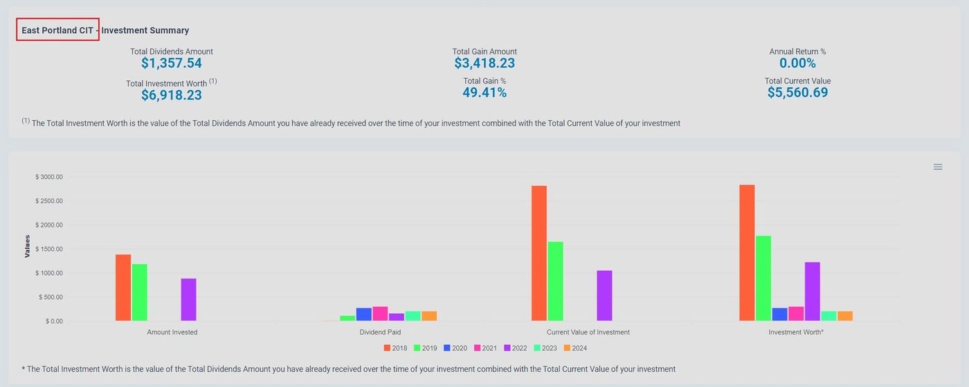 Investor Portal, Dashboard, Investment Summary Graph Location#