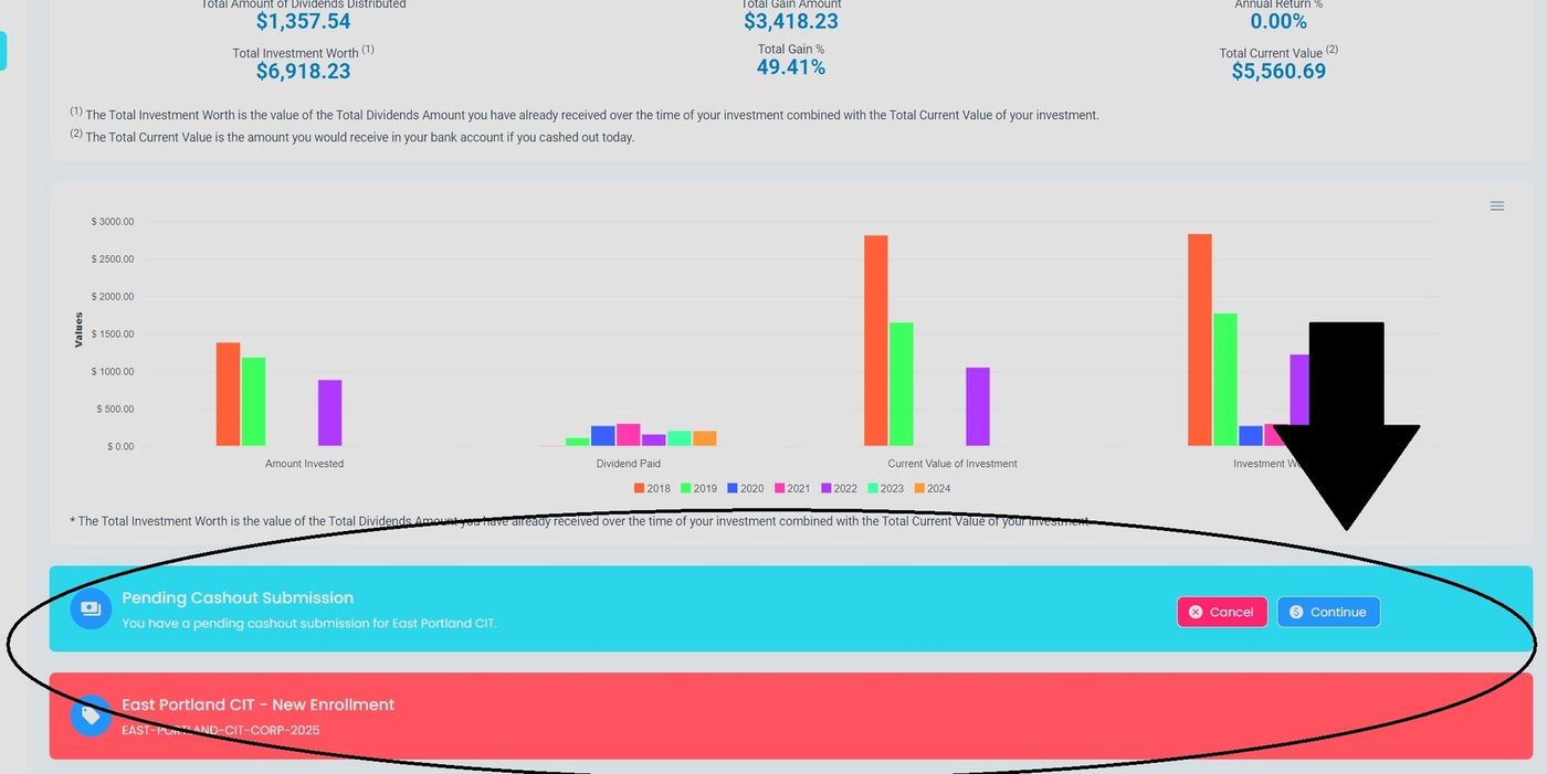 Welcome to the Section: Dashboard section. This area displays all companies you have enrolled with as an investor and allows you to manage your investment status.