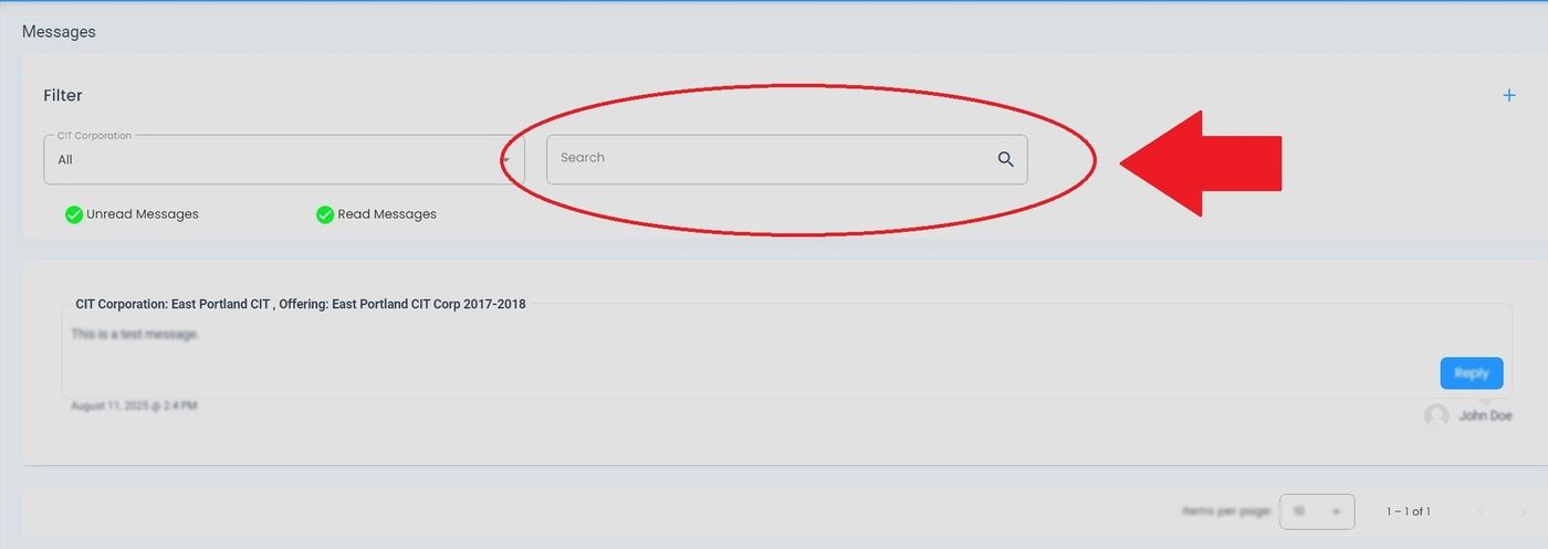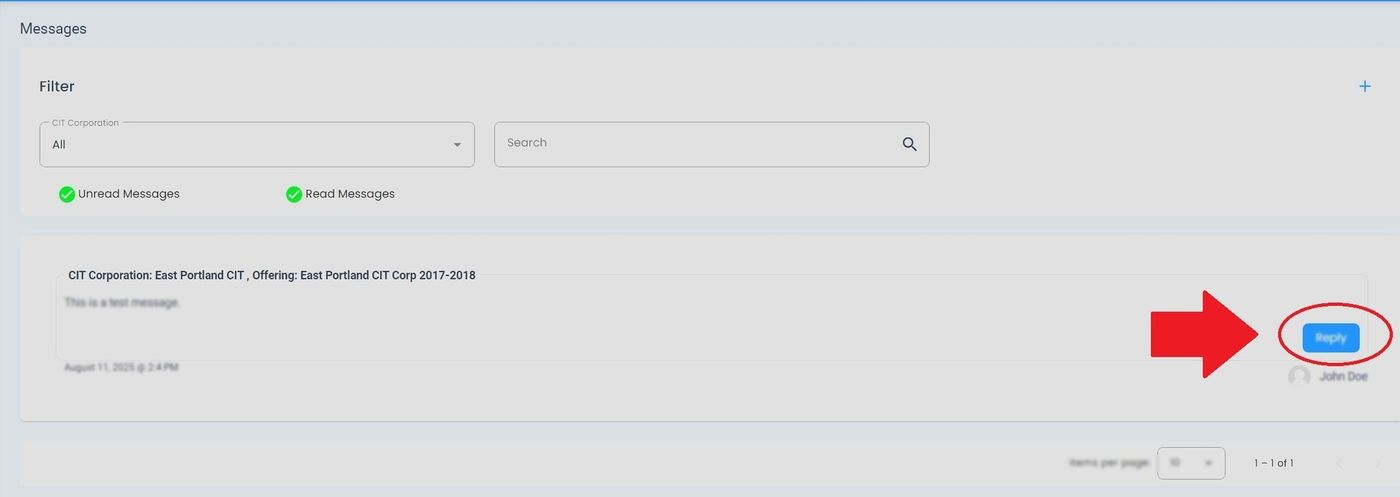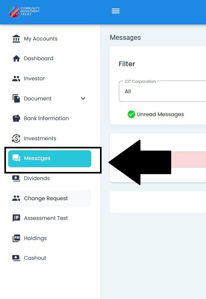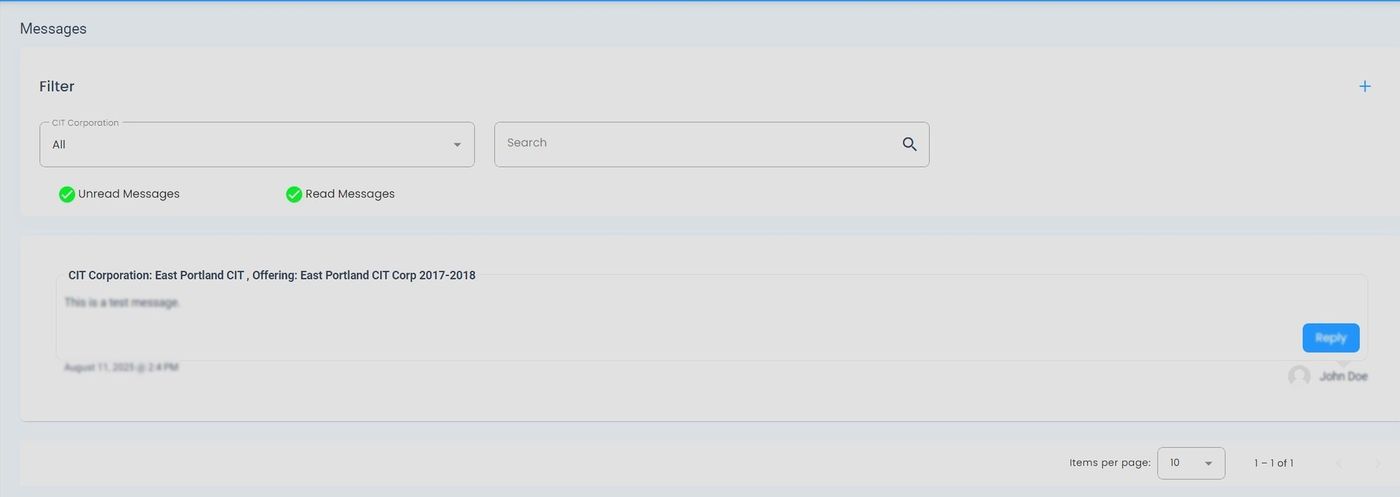 The Section: Messages section allows you to reply to communications from CIT Corporations.